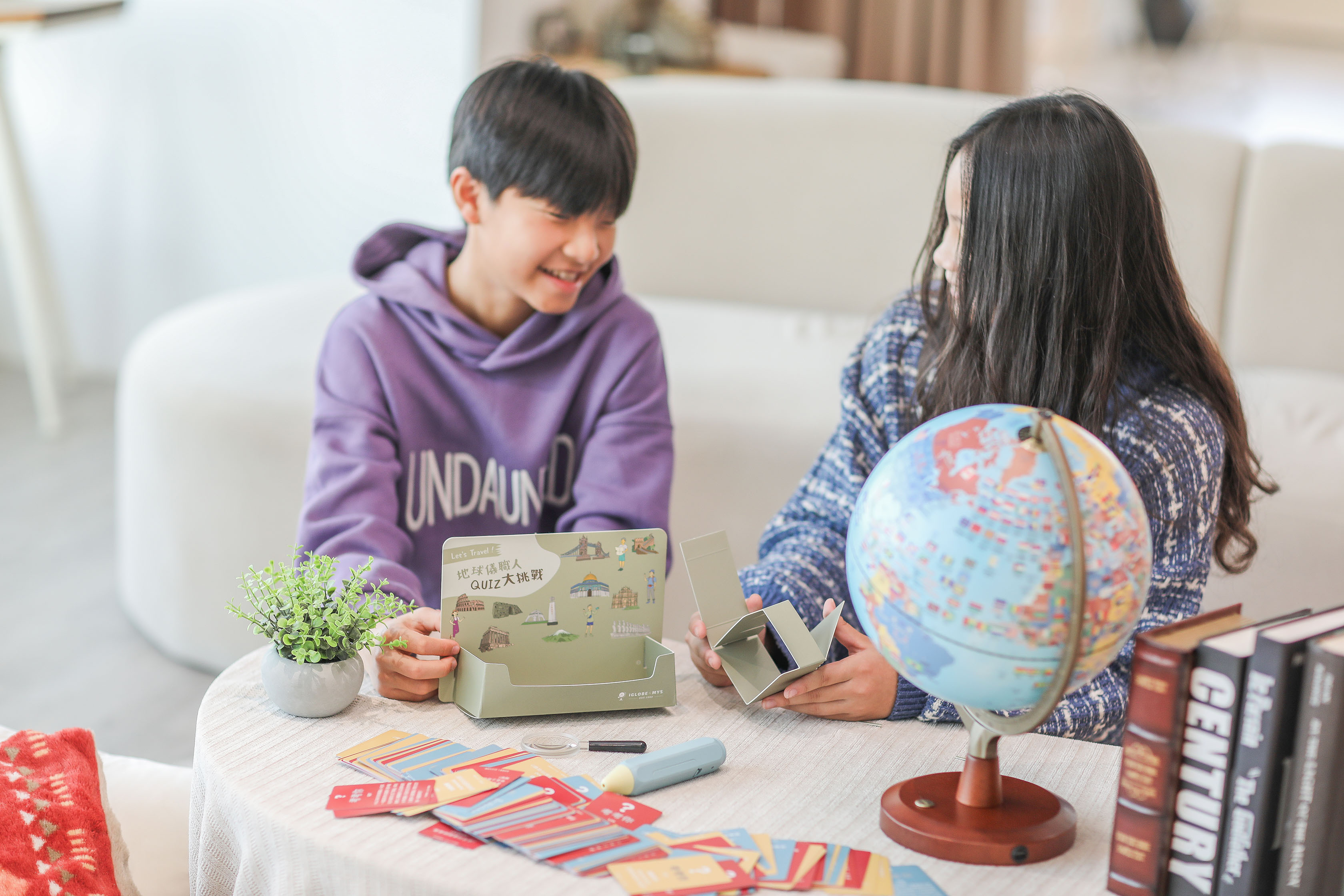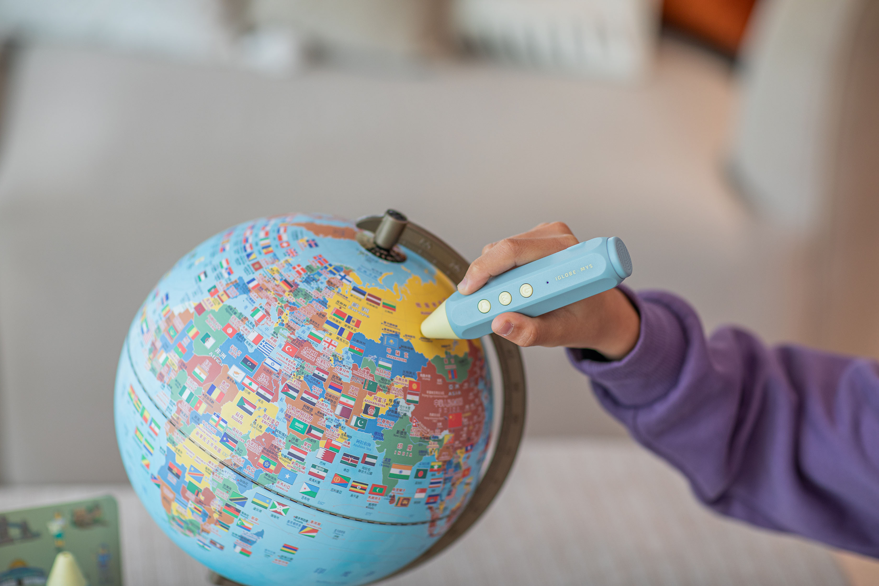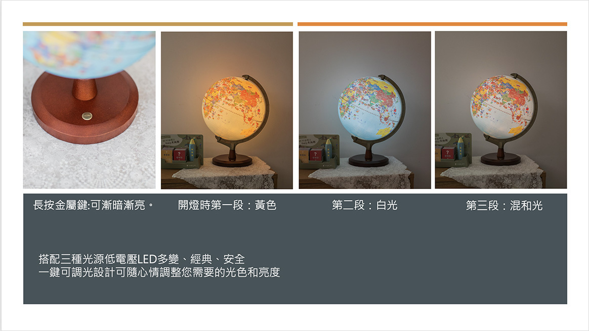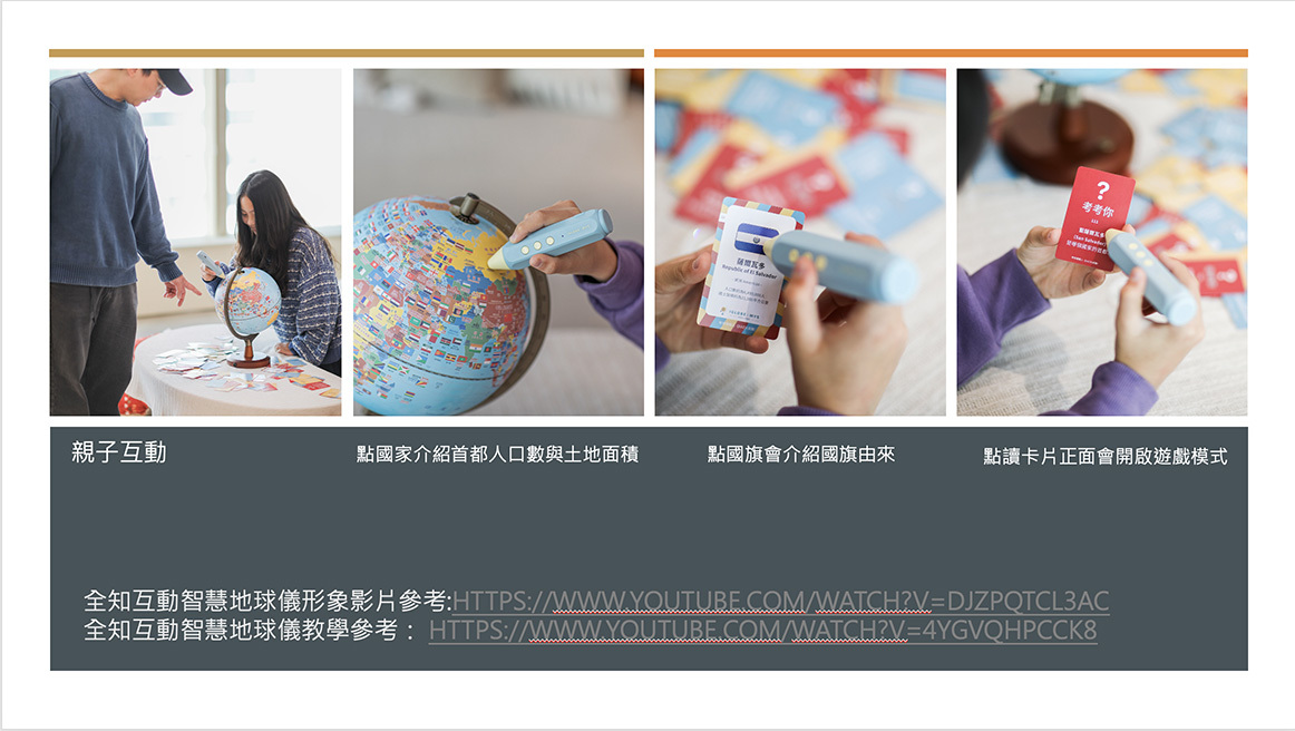 ① 10吋全知互動智慧地球儀 — 用手指觸碰,地球的秘密一一揭曉。國家、首都、語言、氣候,邊玩邊學,讓地理不再只是課本上的名詞。