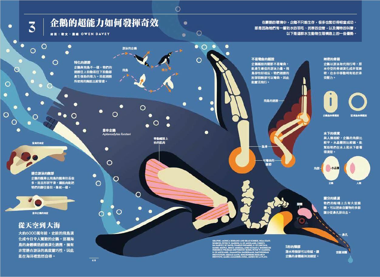 企鵝的祕密生活,企鵝的羽毛可以防冰,特化的翅膀有助於牠們在水中推進,還有其他經過長