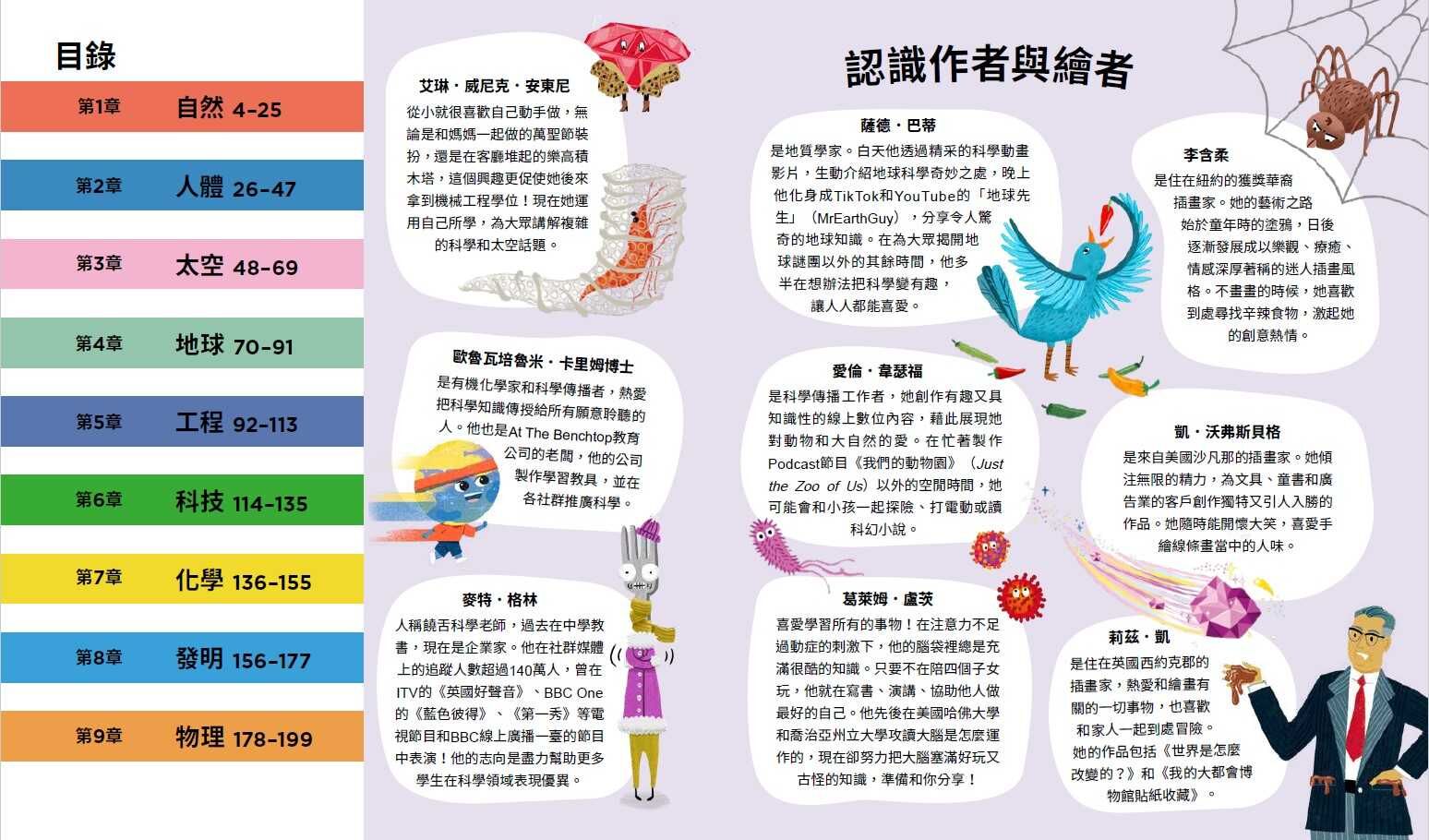 涵蓋主題橫跨全球,貫穿古今,文字輕鬆逗趣,插畫幽默風趣,讓孩子從趣味中吸收新奇的科學知識