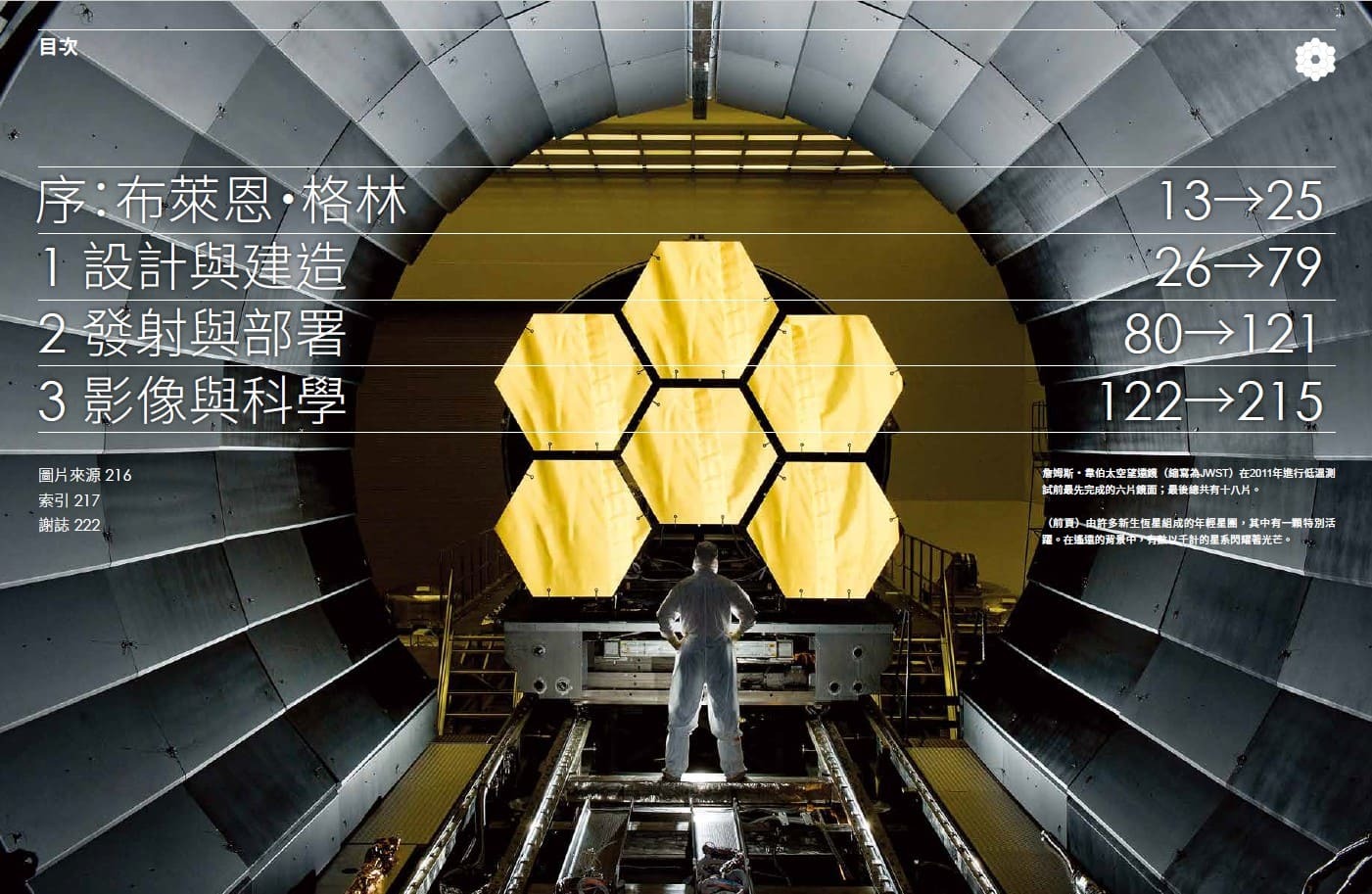 2010年的6月溫暖宜人,我站在紐約市閃爍的天際線包圍之下,被一件人類智慧的巨作深深吸引。太陽在砲臺公園(Battery Park)灑下金色的光芒時,我被詹姆斯・韋伯太空望遠鏡的全尺寸模型深深迷住了。這場世界科學祭(World Science Festival)的活動,吸引了許多充滿好奇心的人和天文愛好者前來探索人類知識的極限。一位年輕學生問了一個問題,讓我有點吃驚:「所以這就是我們要用來理解人類為什麼存在的方法嗎?」我面帶微笑,被這個突如其來的直率說法嚇了一跳:他一語道破了敬畏與科學的關連,而這正是我再熟悉不過的。正如這位學生所感覺到的,當時距離發射還有十幾年的韋伯太空望遠鏡,不僅預期將窺見遙遠的宇宙,同時也和所有志向遠大的挑戰一樣,將如同舉起一面鏡子,映照出人類的本質。韋伯的計畫,展現了我們打算以何等的深度和廣度來了解自己和這個實在界的決心。