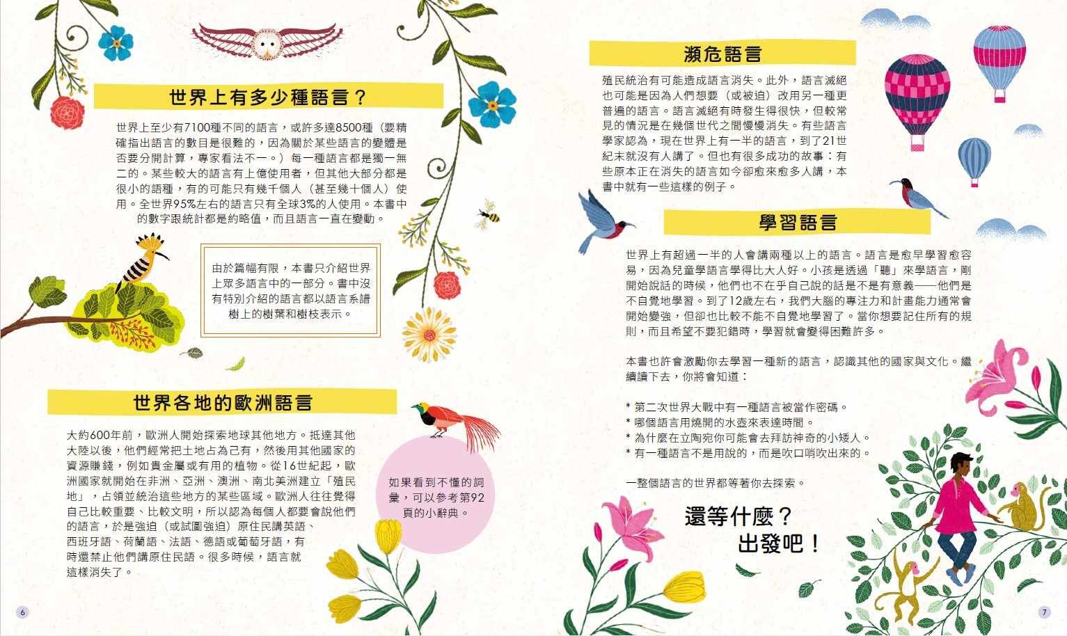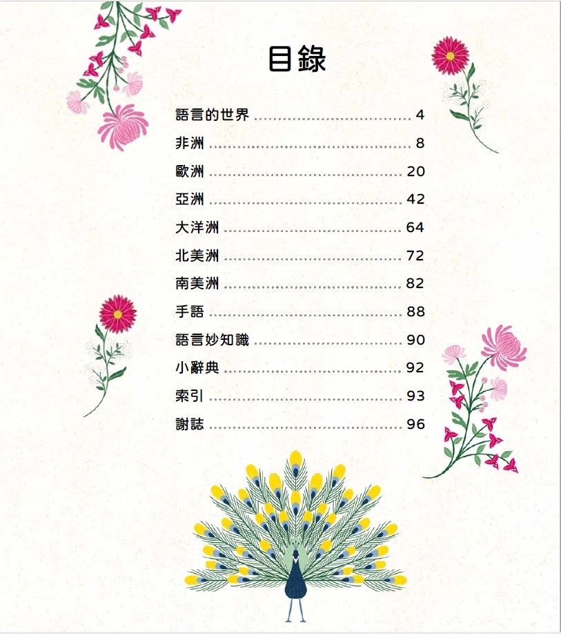 你應該可以在本書中找到你自己的語言以及其他千百種語言的介紹。你會發現有關這些語言的奇聞軼事、一些有趣諺語,還有某些語言中的某些字怎麼講。