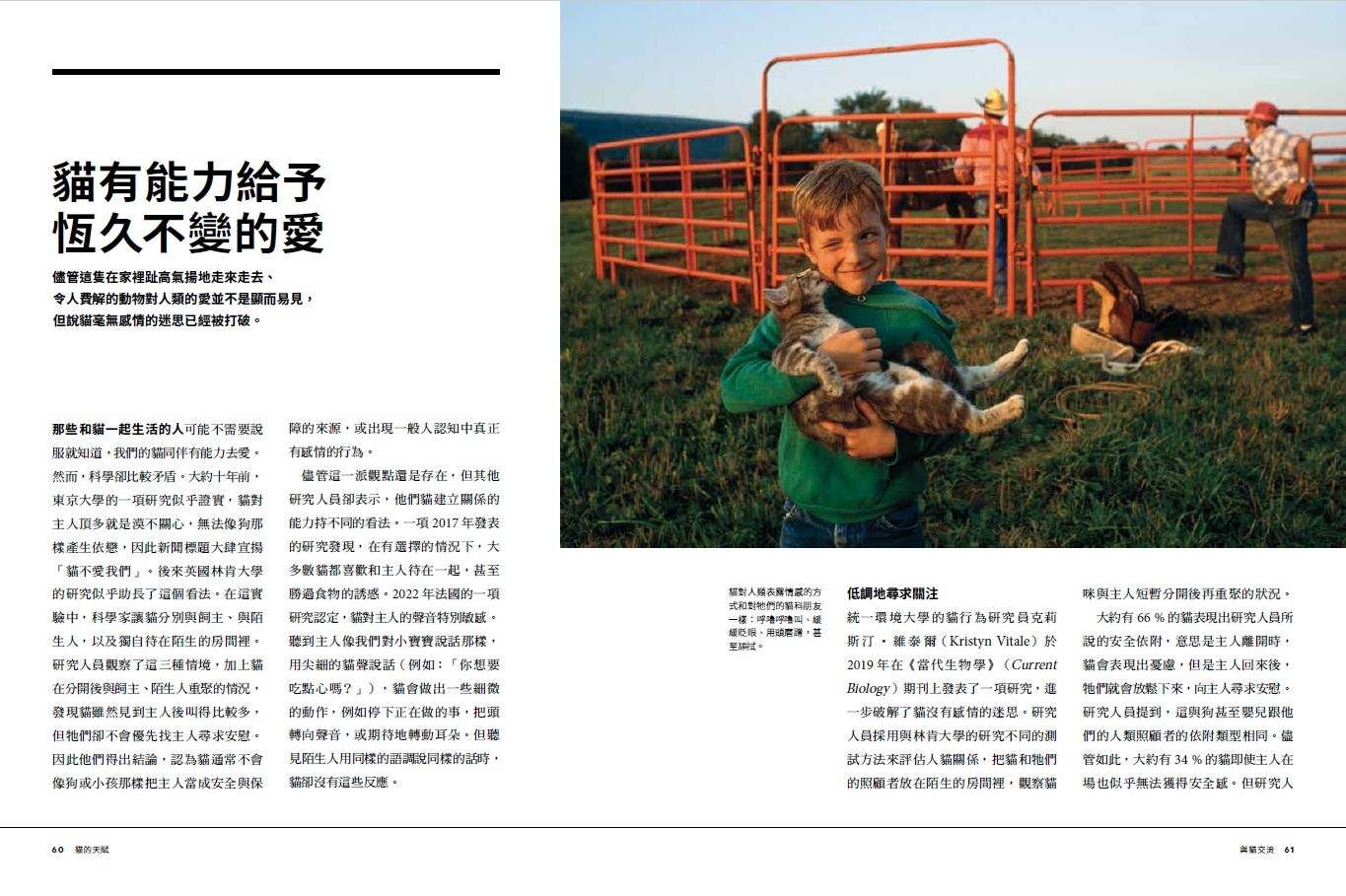 在這期特刊中,我們深入探討研究人員的發現:家貓的思考與行為模式,以及牠們從獨居的野貓祖先演化而來的過程。我們還跟一位演化生物學家討論了貓在遙遠未來可能的演化方向。此外,讀者也許會驚訝地得知,許多具有遠見的名人(物理學家、發明家、天文學家、保育人士)對他們毛孩的熱情,與投注在他們本業的一樣多。另外,我們還追溯了貓從受人崇拜,到淪為黑暗使者,最終又重新獲得全世界數億人類喜愛的歷程。