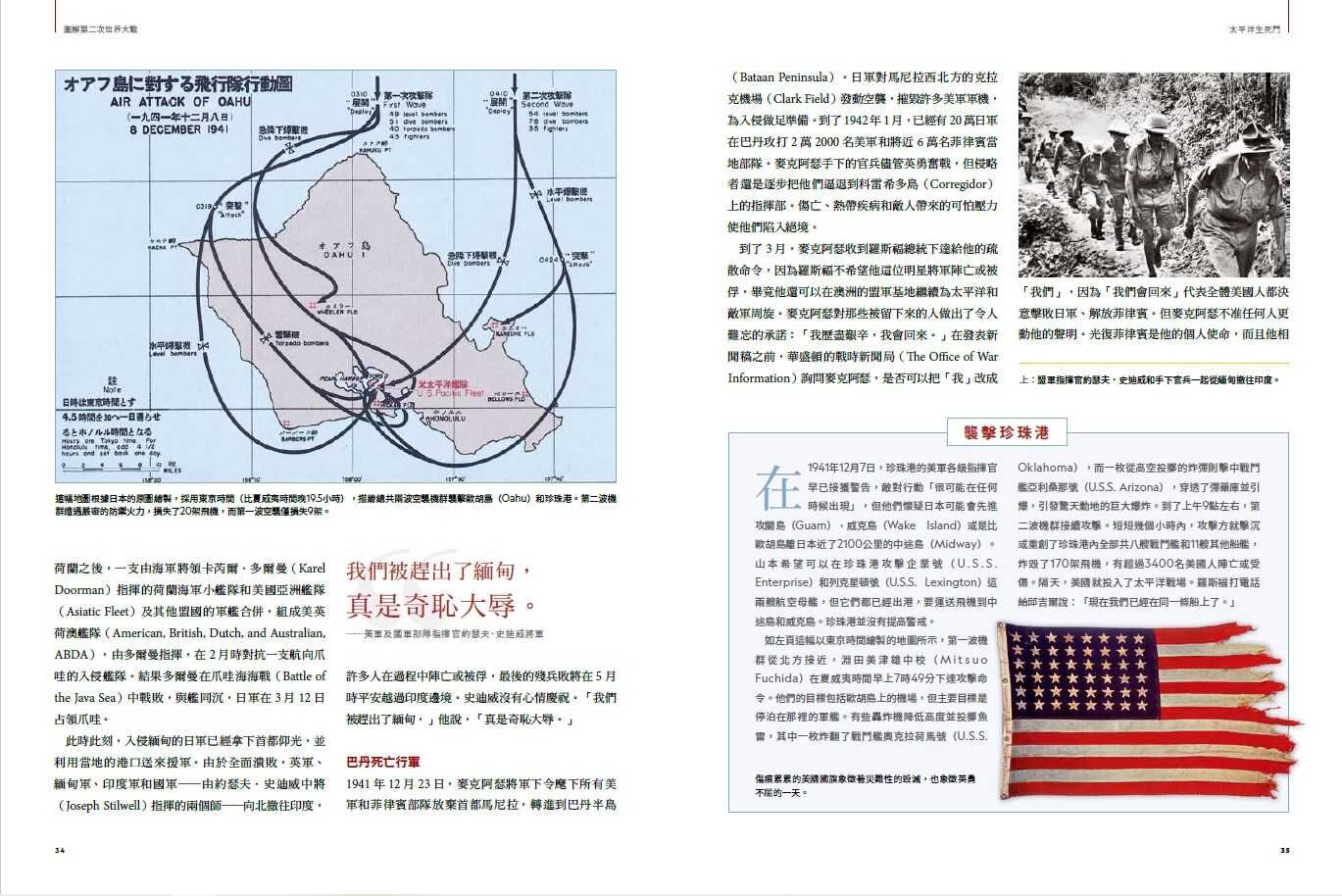 美國在1942年投身第二次世界大戰時,不單是政府機構、國家地理學會(National Geographic Society)也填補了對戰區地圖的需求。對包括太平洋艦隊(Pacific Fleet)司令官在內的許多軍官來說,學會的地圖非常有用,值得信賴。1942年9月,切斯特.尼米茲(Chester Nimitz)海軍上將搭乘B-17轟炸機飛往瓜達卡納島(Guadalcanal),但飛行員卻在惡劣天候中迷航。飛行員手裡的小比例尺索羅門群島(Solomons)地圖只標示出較大的島嶼。尼米茲說:「不過我們運氣不錯,我手下的海軍陸戰隊軍官有個習慣,就是他總是會在手提箱中攜帶一份國家地理地圖。」如左圖所示,地圖上清楚地標示索羅門群島,不論是大島還是小島都一覽無遺。他們降低飛行高度,認出了聖克里斯托巴島(San Cristóbal)外海的島嶼,最後順利在韓德森機場(Henderson Field)降落,尼米茲在那裡頒發勳章給埃文斯.卡爾森中校(Evans Carlson)。戰後,尼米茲在寫給國家地理學會主席吉爾伯特.格羅夫納(Gilbert Grosvenor)的信中提到,他搭機前往瓜達卡納島的那段旅程,是「向太平洋上的部隊證明您的地圖是無價之寶」的諸多事證之一。書中這些地圖取自位於華盛頓特區的學會檔案庫,加上其他地圖,從日常決策到決定二次大戰結果的長期戰略,讓我們對戰時的世界有更深入的洞察和理解。