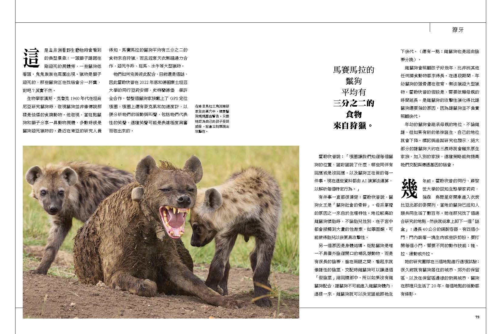 舉例來說,在非洲東部的莽原上,落日在大地撒上金色光芒,一對雌獅在下風處跟蹤著數百頭牛羚群。牠們跟得非常近,但是不被發現,領頭的雌獅緊盯著受害者,然後突然採取行動,大步躍進,拉近距離,在足夠靠近時揮動銳利如刀鋒的爪子。縱使獵物在第一擊後逃脫,腹側的傷口已深,淌出鮮血,因此不可能跑遠,同群的夥伴已經驚慌逃散了。
