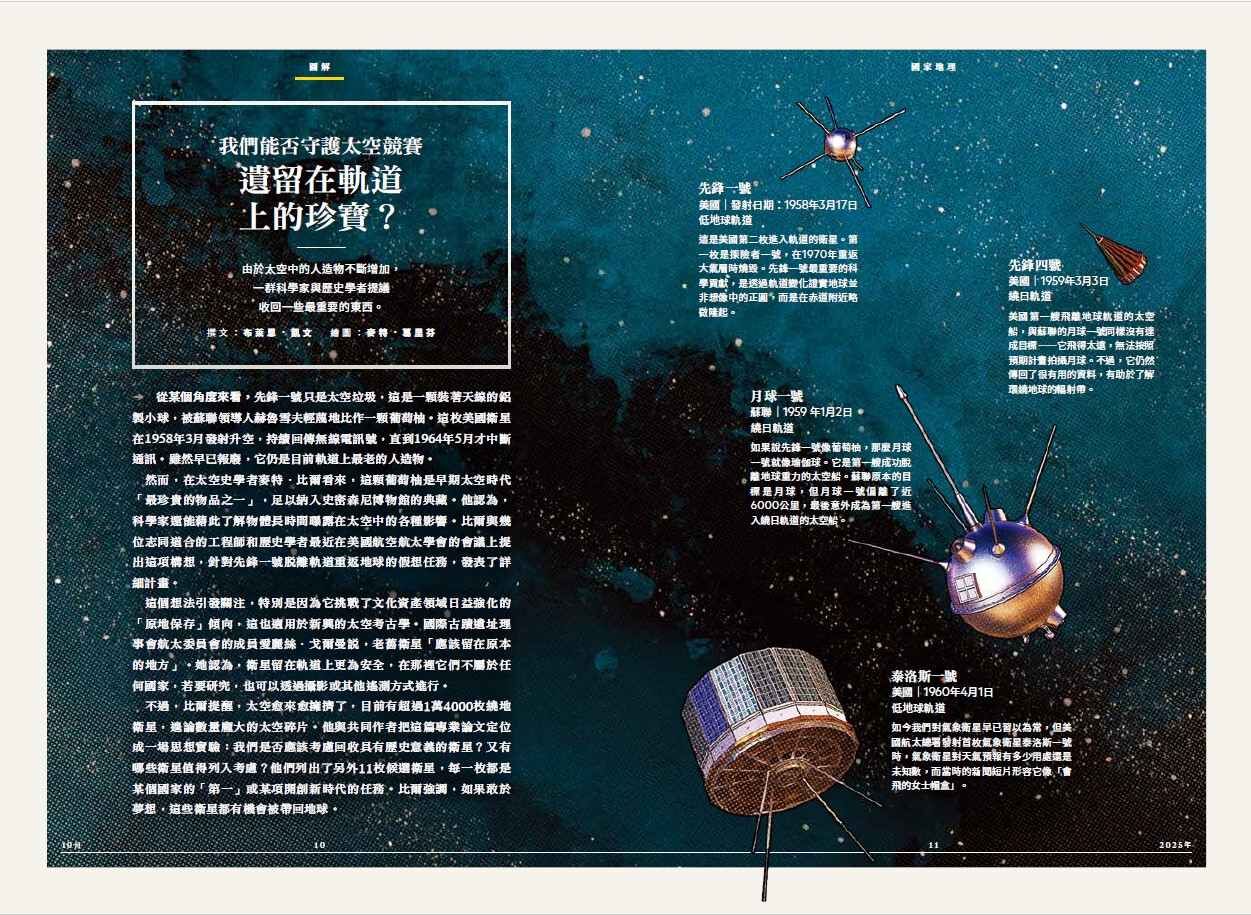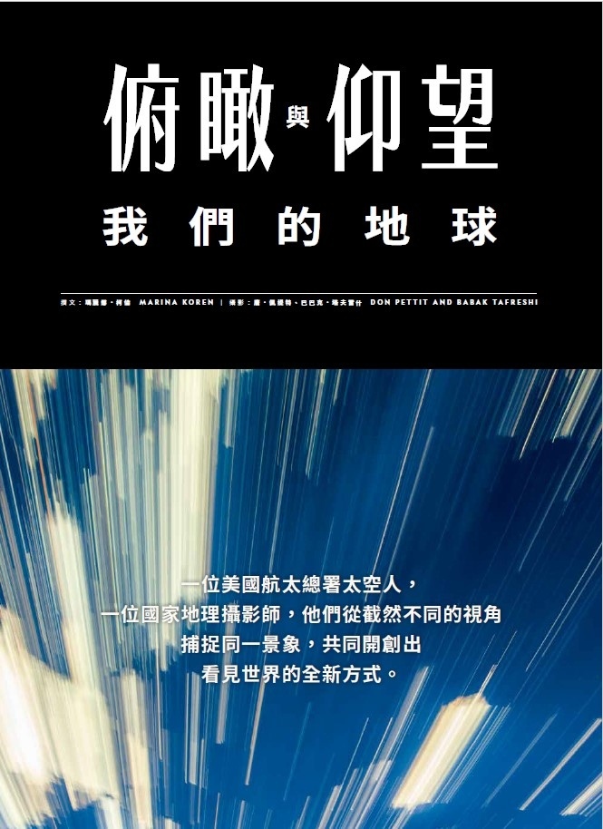 本期雜誌裡,我們同時完整呈現了這兩種獨特的體驗。在〈俯瞰與仰望我們的地球〉這篇難得的專題報導中,太空人唐.佩提特與星空攝影師巴巴克‧塔夫雷什分別從國際太空站以及地球上一些最壯闊的夜空下,拍攝我們居住的行星與太空。尤其難得的是,兩人分別從天上與地面拍攝到近年來最明亮的彗星:C/2023 A3(紫金山-ATLAS),具體呈現了天涯共此時的意境。