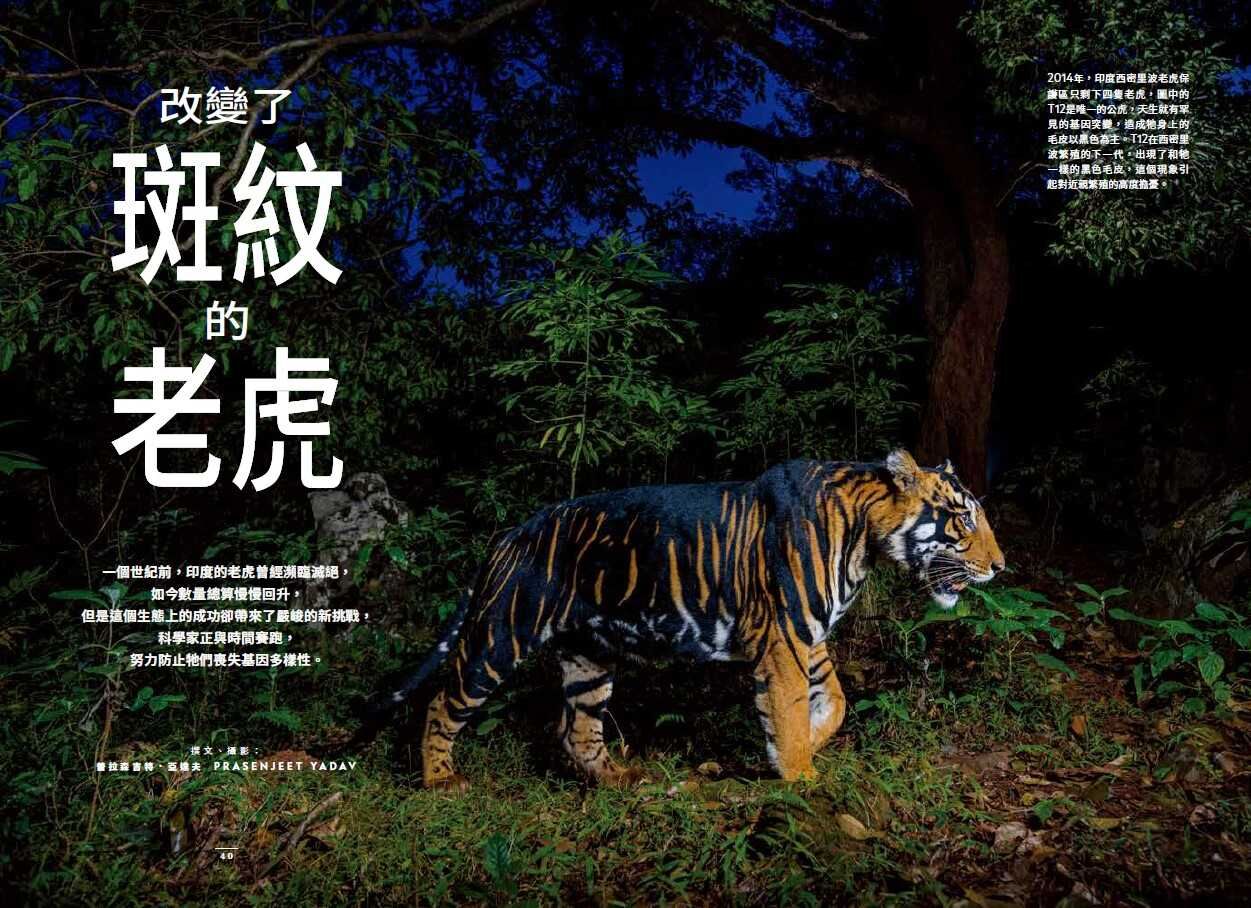 國家老虎保育局在2006年展開全印度野生老虎的調查,當時的老虎數量大約是1400隻,遠低於一個世紀前估計的4萬隻。在西密里波,族群數量在2014年跌落谷底,僅僅剩下四隻老虎,只有一隻是公的。不過這隻公虎在2015年死去前一年左右留下了後代,也就是毛皮幾乎全黑、外觀奇特的T12。如今,T12也繁衍出自己的公虎後代。 (全文未完)