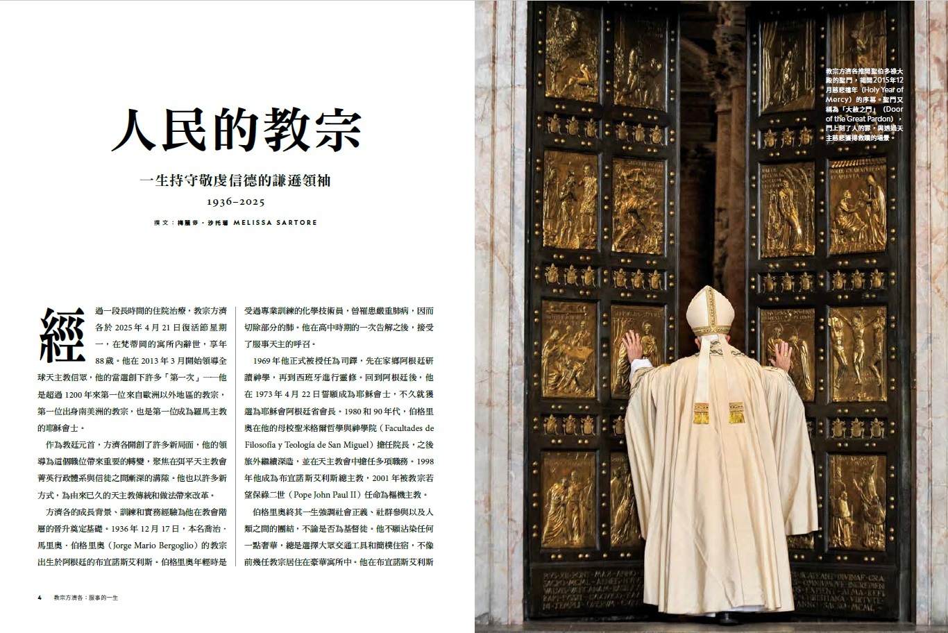 經過一段時間的住院治療,教宗方濟各於2025年4月21日辭世。他在2013年3月開始領導全球天主教信眾。他的當選,創下許多的「第一次」——他是1200年來第一位來自非歐洲地區的教宗,第一位出身於南美洲的教宗,也是第一位成為羅馬主教的耶穌會士。