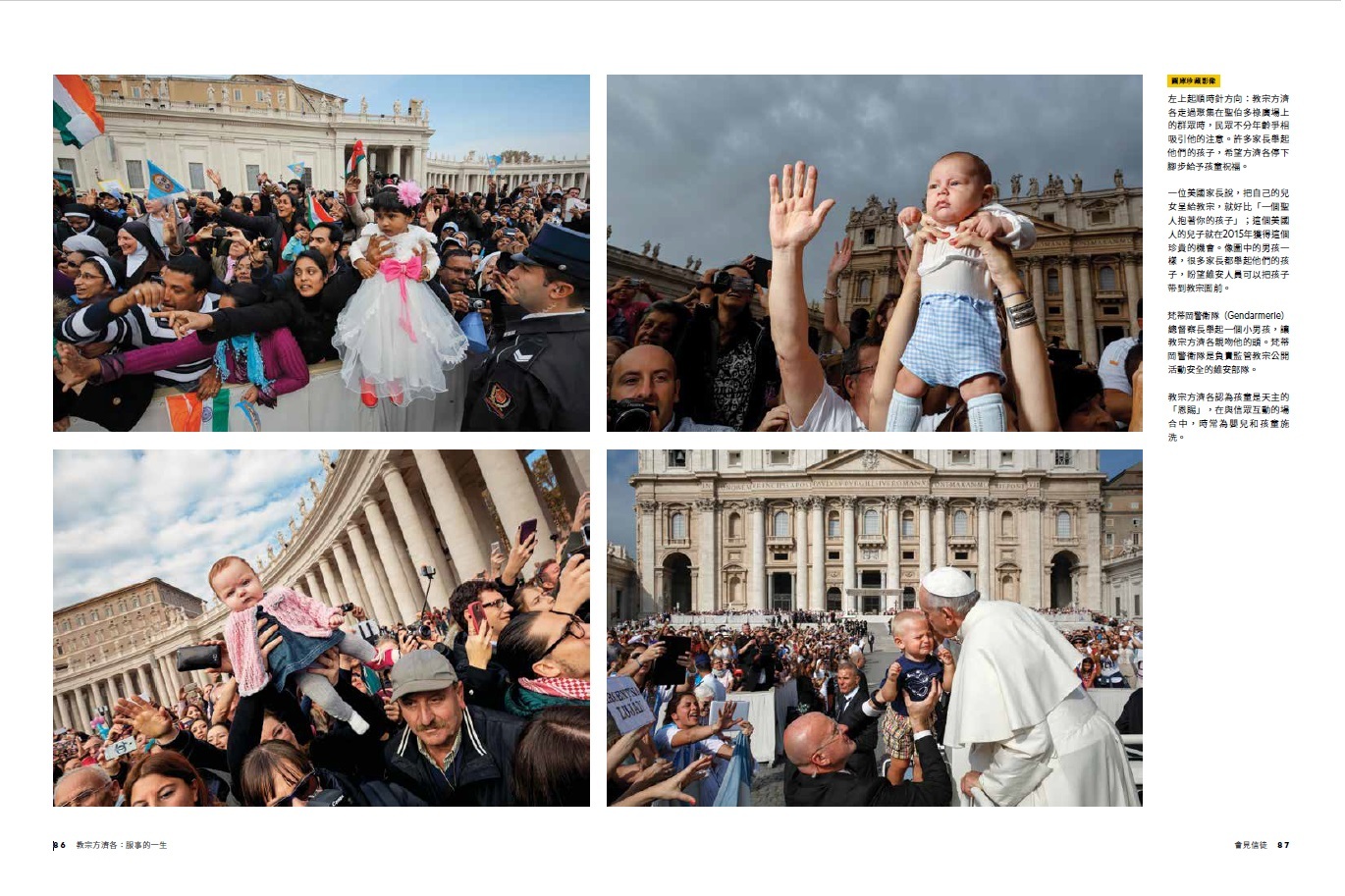 教宗方濟各在聚集於聖伯多祿廣場上的群眾中,與新婚夫婦交談、為病弱者祝福、親吻年幼不知世事的嬰孩額頭。不論是世界領袖或是囚犯,他同樣親吻他們的雙足,謙遜之姿展露無遺。2015年,他不畏菲律賓的熱帶風暴天候,與群眾一樣穿著黃色塑膠雨衣,在風雨中為數千人主持彌撒。一次到美國的訪視中,他乘坐一輛樸實的飛雅特小轎車,而不是更顯眼的座車,在華盛頓特區的街區中穿行。