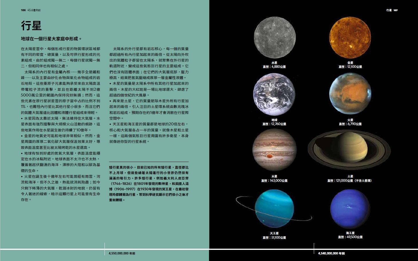 隨著書頁,你會探索恆星和星系的誕生、太陽系的形成,了解地球上的生命如何演化出來,宇宙在遙遠未來的命運,每頁下方都有時間軸,讓你隨時知道自己來到哪個時刻。天文物理學家劉俊初教授用淺顯易懂的文字、簡單明瞭的插圖和瑰麗絢爛的天文照片,娓娓道出這部兼具宇宙歷史和宇宙科學的精采故事。