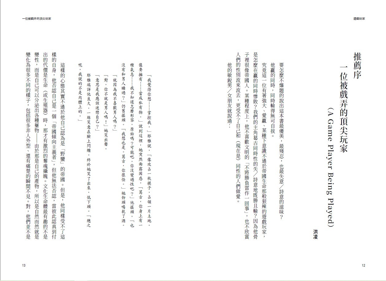 究竟這一位有著強大、愛贏、某種下意識不遜於帝國生命那般狠辣的遊戲玩家,是怎麼在贏的同時慘敗?我們的主角葛古同時性的失/詩意地既勝且輸?因為他骨子裡很像帝國人。某種程度上,他不喜歡文明的「不將勝負當作一回事」,也不欣賞人們的性別流來流去,更受不了自己和(現在是)同性的人們做愛。